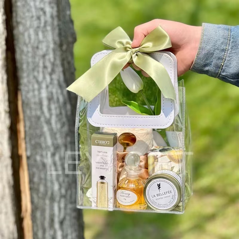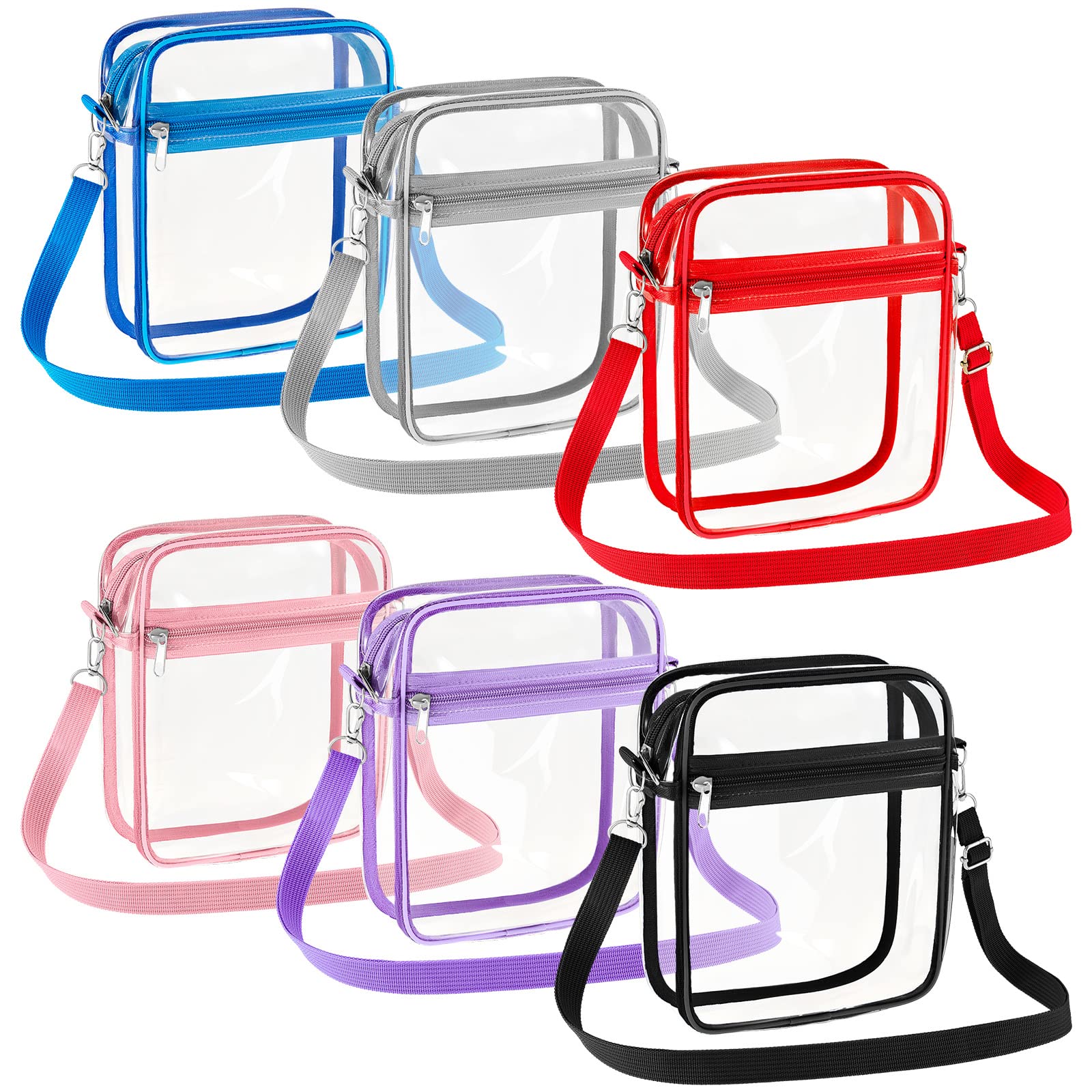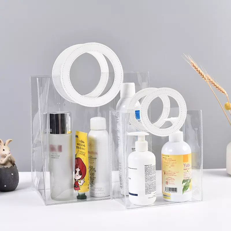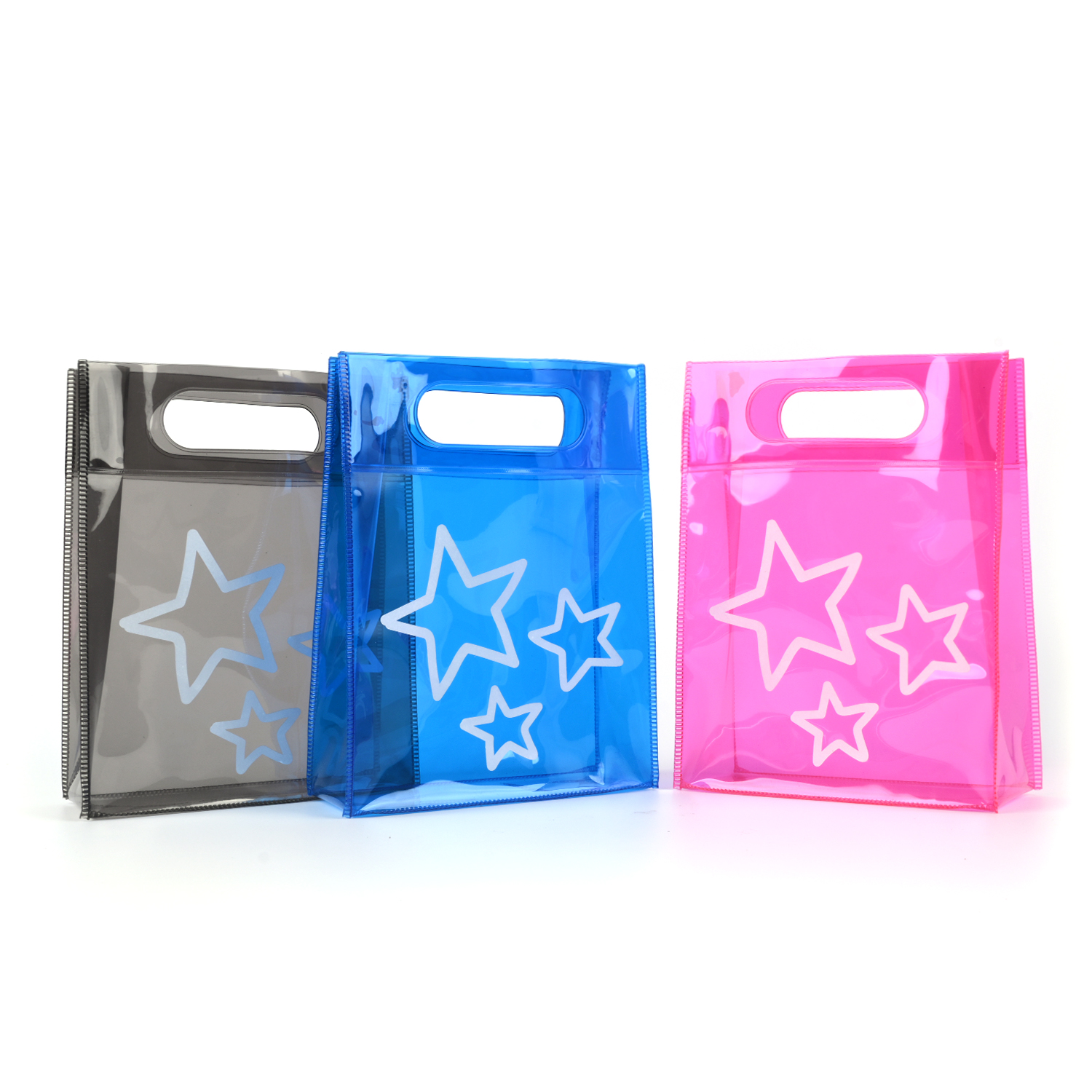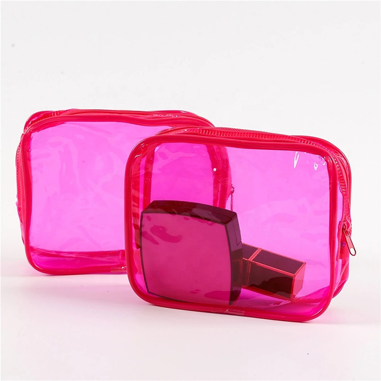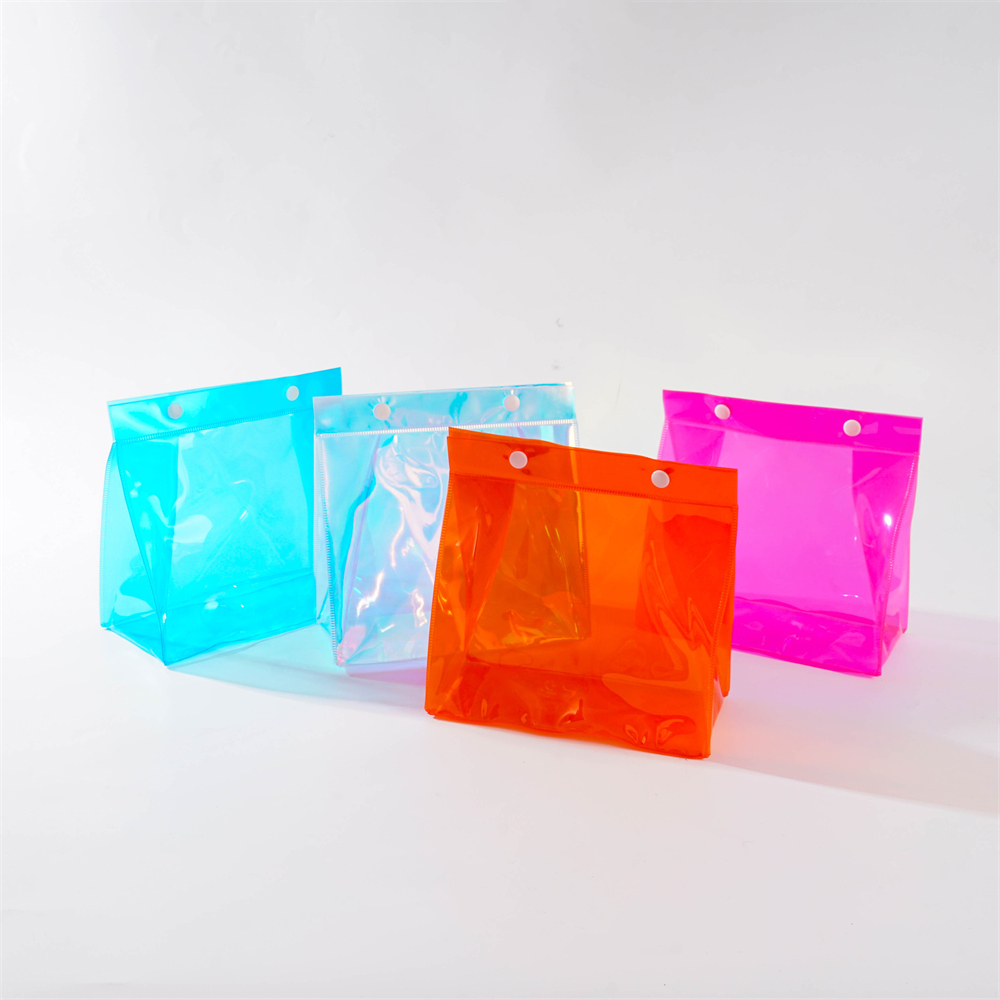 2025 a buon mercato trasparente trasparente PVC borsa carina colorata rosa Neon viaggio lavaggio trucco cosmetico sacchetto per bambini caramelle regalo sacchetto con pulsante
